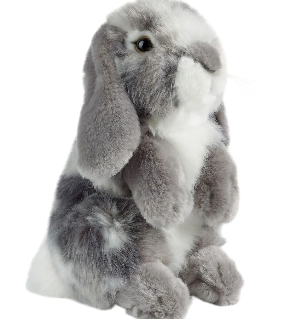 Charmerende Living Nature bamse formet som en siddende kanin af blødt plys i hvide og grå nuancer. Living Nature bamsen er blød og indbydende, hvilket giver børn en tryg legekammerat.
