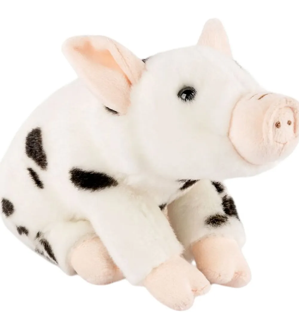 Charmerende Living Nature bamse formet som griseungen Juliana af blødt plys i hvide og sorte nuancer.