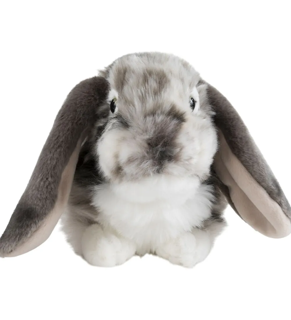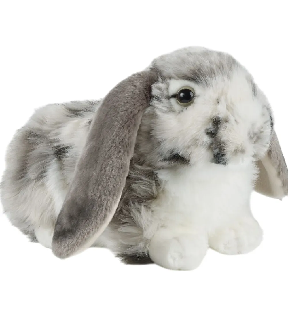 Charmerende Living Nature bamse formet som en kanin af blødt plys i sorte, hvide og grå nuancer.