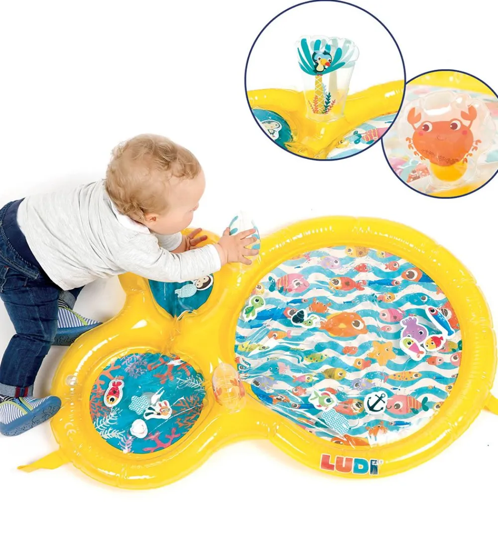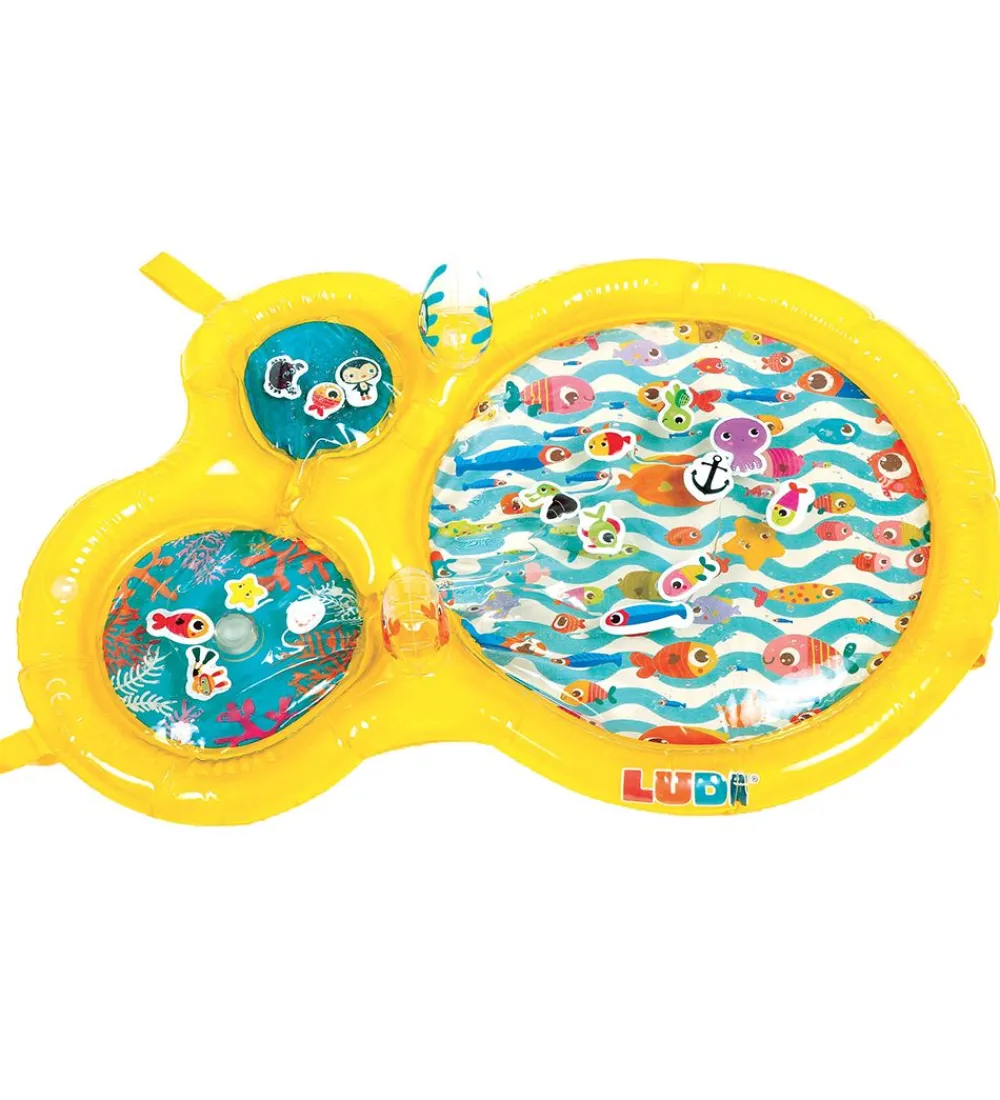 Ludi legemåtten er i blødt plast, som pustes op, og de tre felter fyldes med vand. Dette giver en sjov effekt, og de 16 flydende figurer vil bevæge sig rundt ved bevægelse. Der er to oppustede dyr på toppen, som kan pippe og ringe når de bliver trykket på.