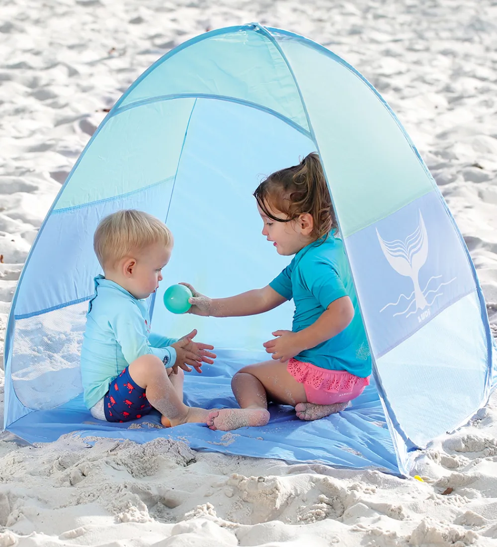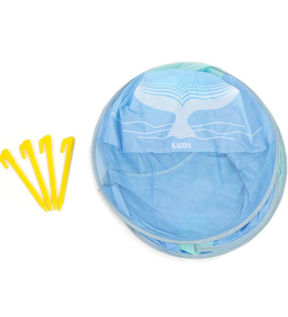 Ludi syggeteltet er perfekt til stranden eller haven, når baby har brug for et skygge sted. Skyggeteltet slåes let op, ved at tage den ud af den medfølgende taske og derved popper teltet op af sig selv. Teltet er fremstillet i et let materiale, så det er nemt at have med på tur.