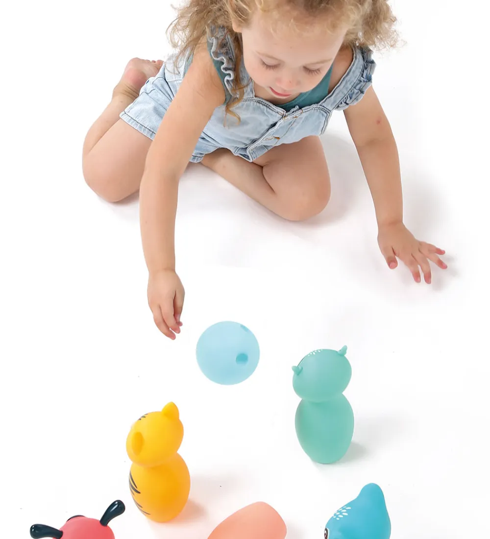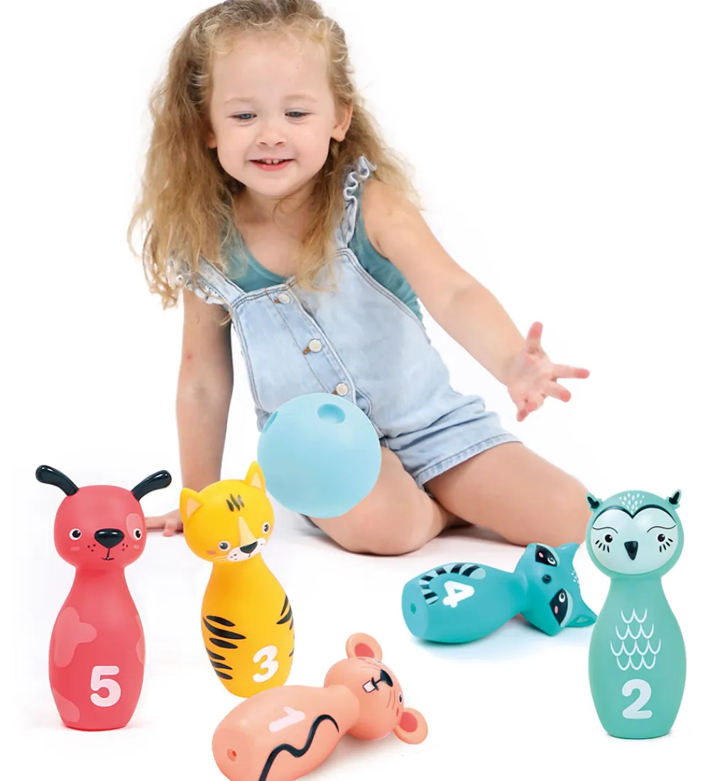 Ludi bowlingsættet er i blødt plastik for en mere behagelig struktur. Det gør også at barnet nemt kant holde ved kuglen. Når børnene triller kuglen afsted, så forbedrer barnet sin koordination og mototiske færdigheder.