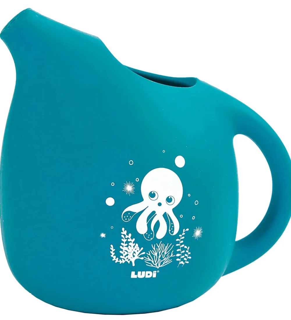 Ludi vandkanden har en rund form med et solidt håndtag og en god hældetud fortil med små huller. Vandkanden er i en lækker og holdbar silikonekvalitet, så den tåler at blive leget med og ikke går i stykker.