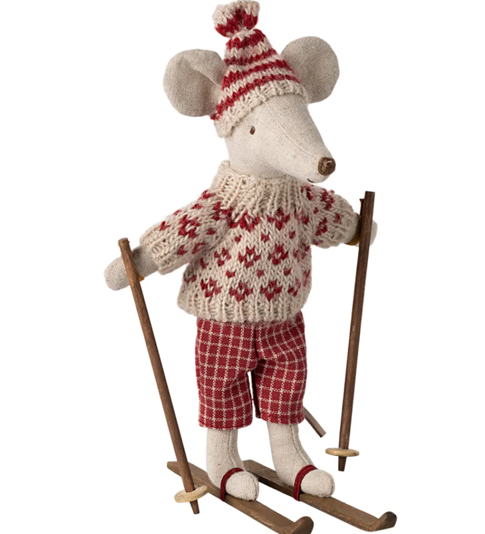 Maileg dukken er udstyret med ski, perfekt til leg og inspirerer til eventyr.