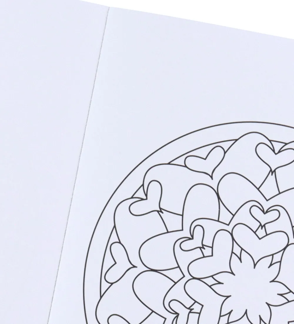 Mandala malerbogen indeholder 32 sider og er trykt på kraftigt bæredygtigt kvalitetspapir. Malebogen er indbundet, så hver enkelt kort kan tages ud og hænges op på væggen eller bruges som kort.