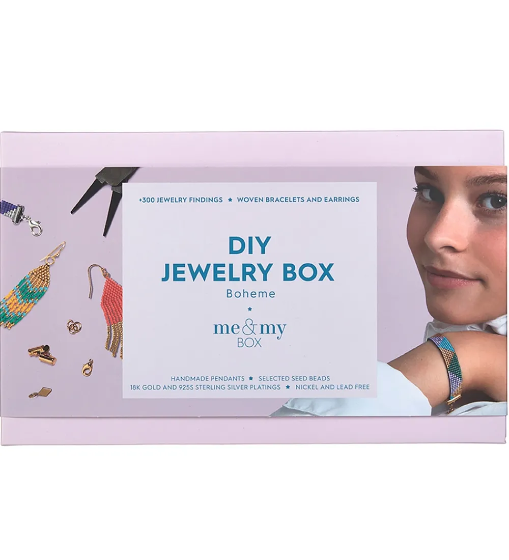 Me&My BOX startboxen er perfekt til de kreative, som ønsker at sætte et unikt præg på deres smykker. Med sættet kan man lave armbånd, halskæder, ankelkæder, øreringe og hvad end ellers fantasien kan finde på. Me&My BOX designer selv deres vedhæng og er af yderst høj kvalitet. Alle metaller er belagt med enten 18 karat guld eller 925S Sterling sølv.