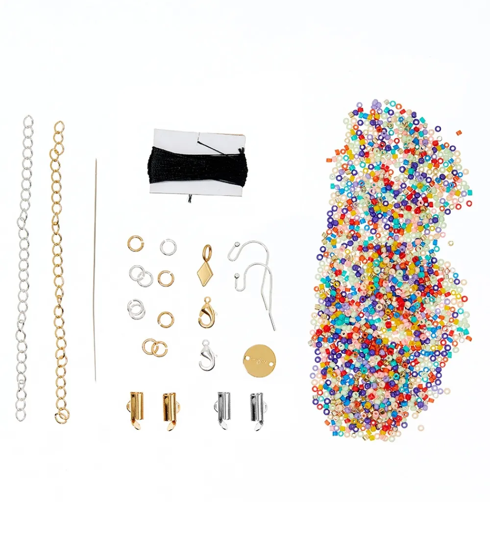 - Ekstra: +300 smykkedele til vævede armbånd og øreringe. Nikkel og blyfri