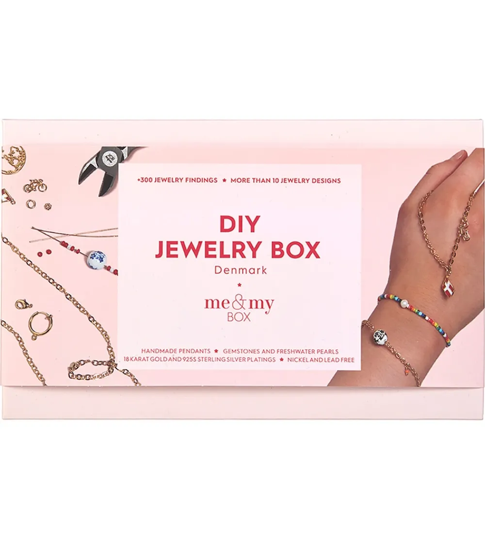 Me&My BOX startboxen er perfekt til de kreative, som ønsker at sætte et unikt præg på deres smykker. Med sættet kan man lave armbånd, halskæder, ankelkæder, øreringe og hvad end ellers fantasien kan finde på. Me&My BOX designer selv deres vedhæng og er af yderst høj kvalitet. Alle metaller er belagt med enten 18 karat guld eller 925S Sterling sølv.