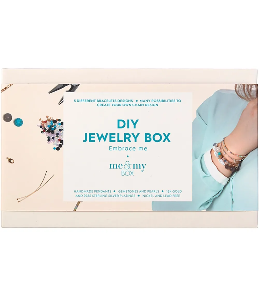 Me&My BOX startboxen er perfekt til de kreative, som ønsker at sætte et unikt præg på deres smykker. Med sættet kan man lave armbånd, halskæder, ankelkæder, øreringe og hvad end ellers fantasien kan finde på. Me&My BOX designer selv deres vedhæng og er af yderst høj kvalitet. Alle metaller er belagt med enten 18 karat guld eller 925S Sterling sølv.