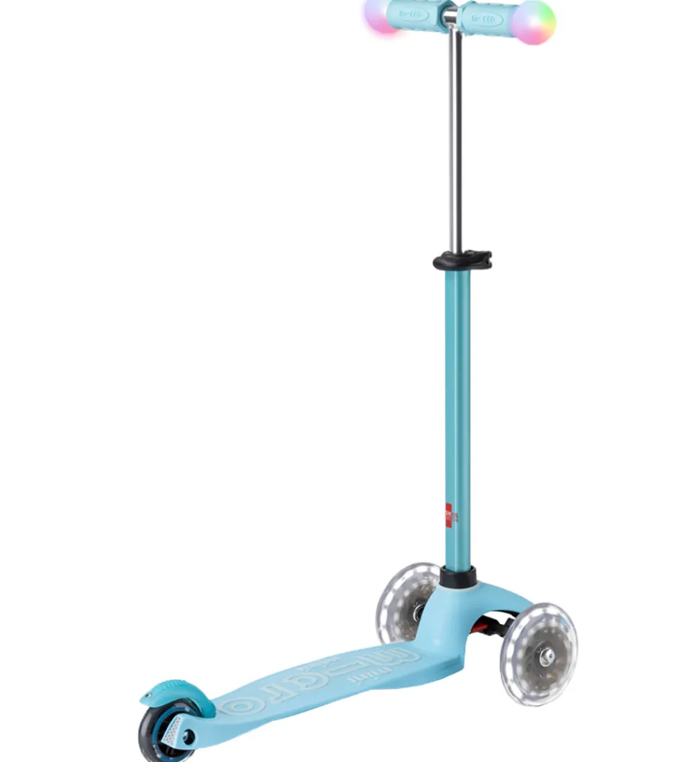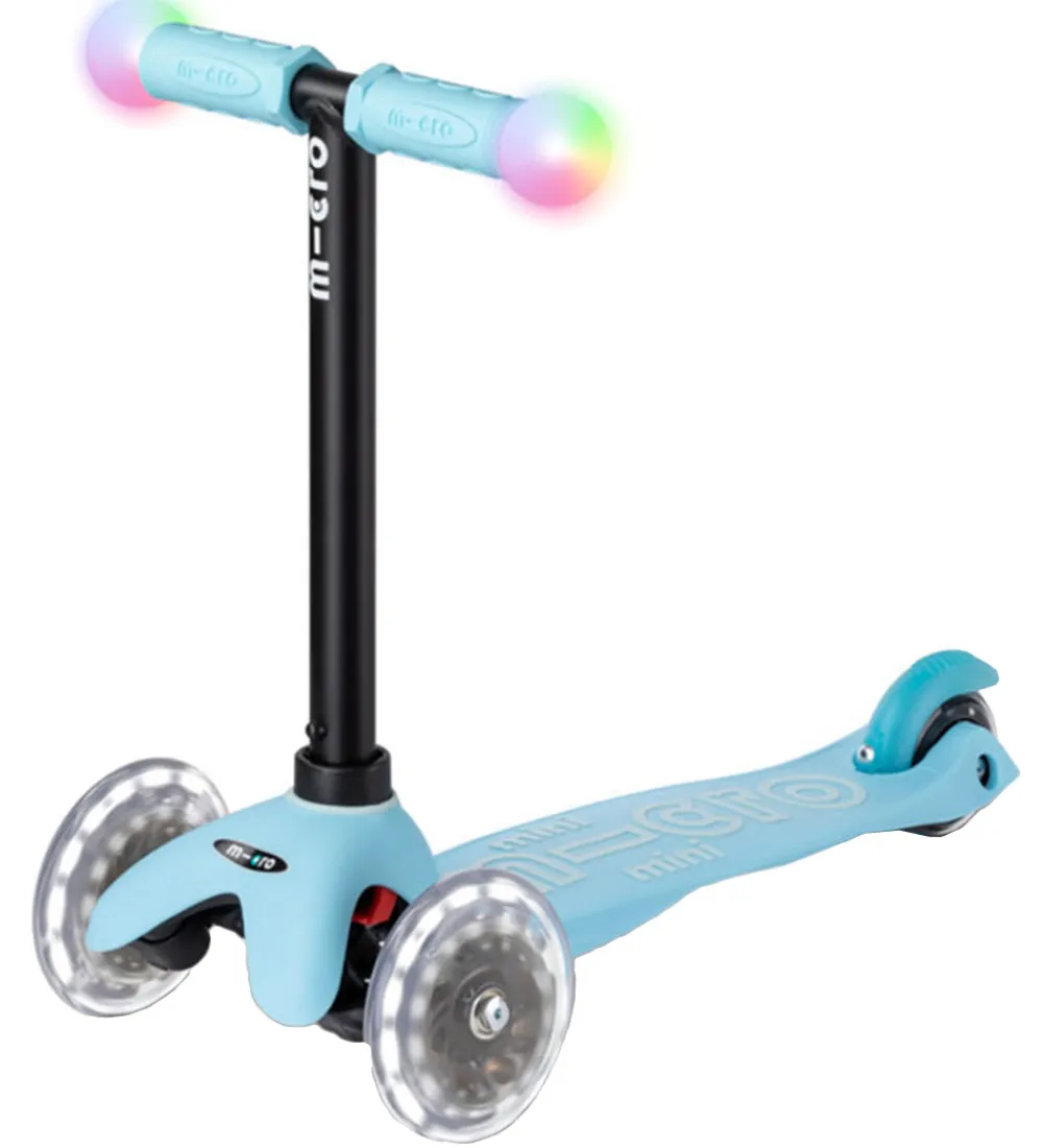 Skønt løbehjul i en flot lyseblå med farverige og blinkende LED hjul.