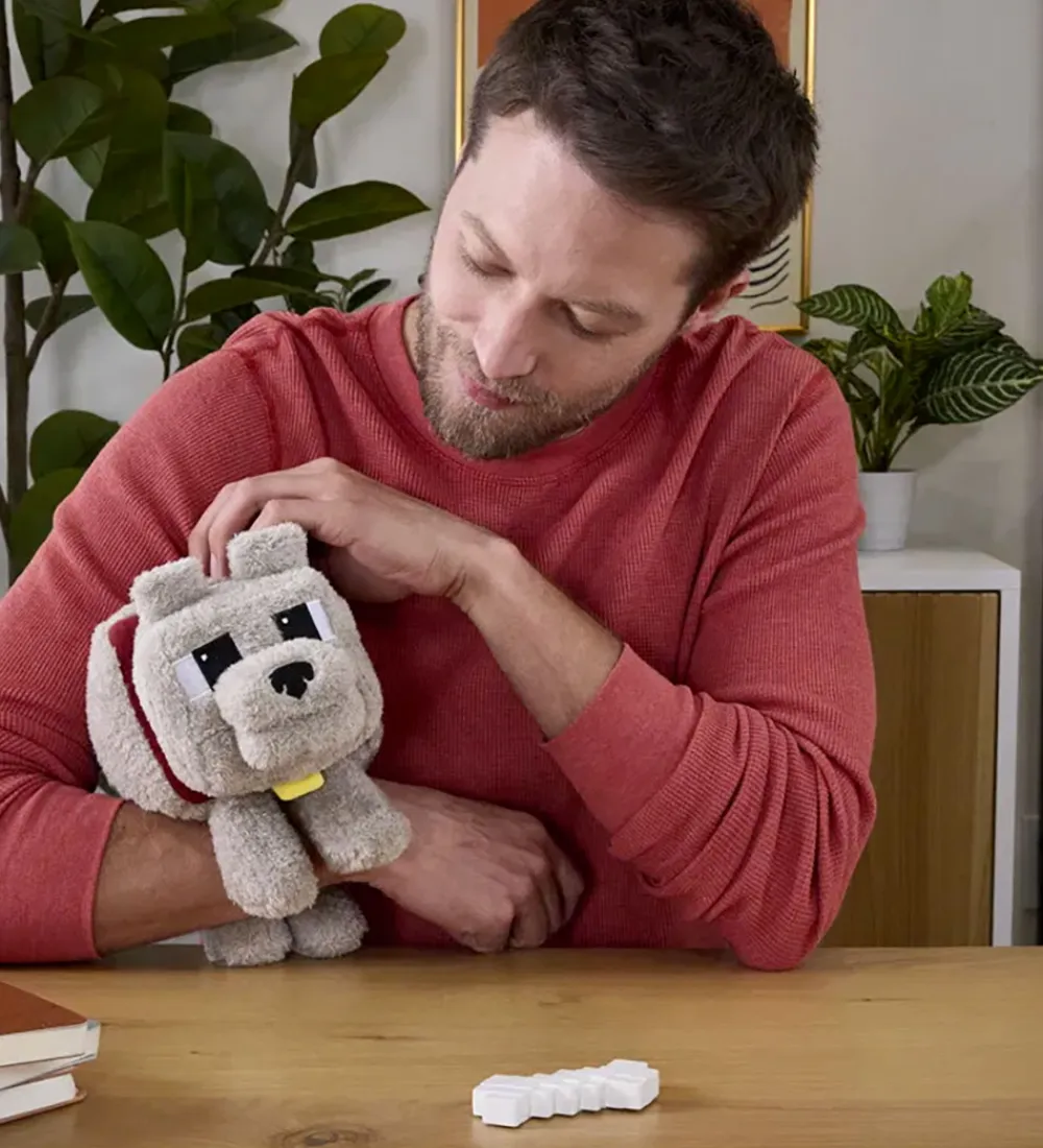 Minecraft bamsen er interaktiv og reagerer med sjove lyde, når man giver den det medfølgende kødben. Derudover er bamsen dejlig blød og har en god størrelse, som helt sikkert vil blive en favorit blandt Minecraft-fans.