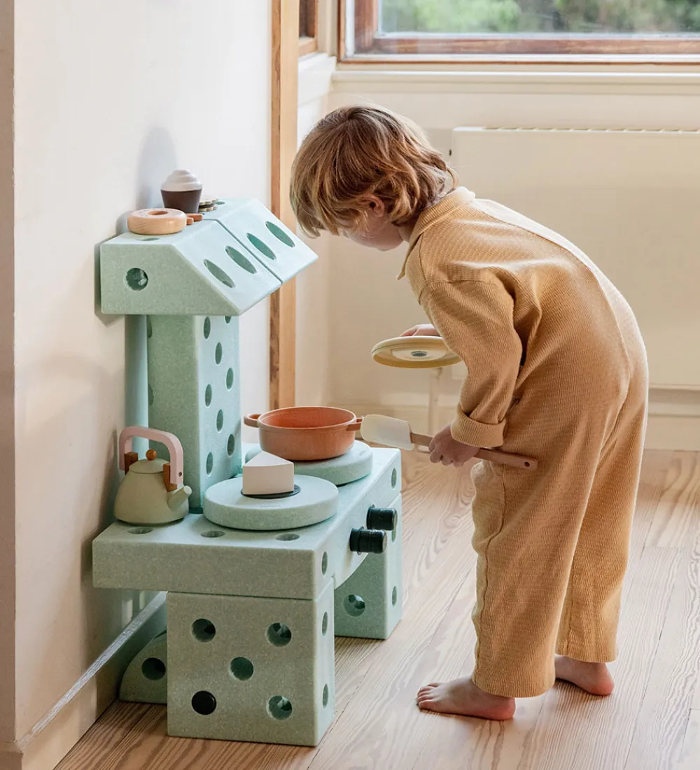 Blokken er af genanvendeligt EPP-skum. Blokken kan vaskes med vand og en børste, tages med i bad og kan endda komme i opvaskemaskinen.