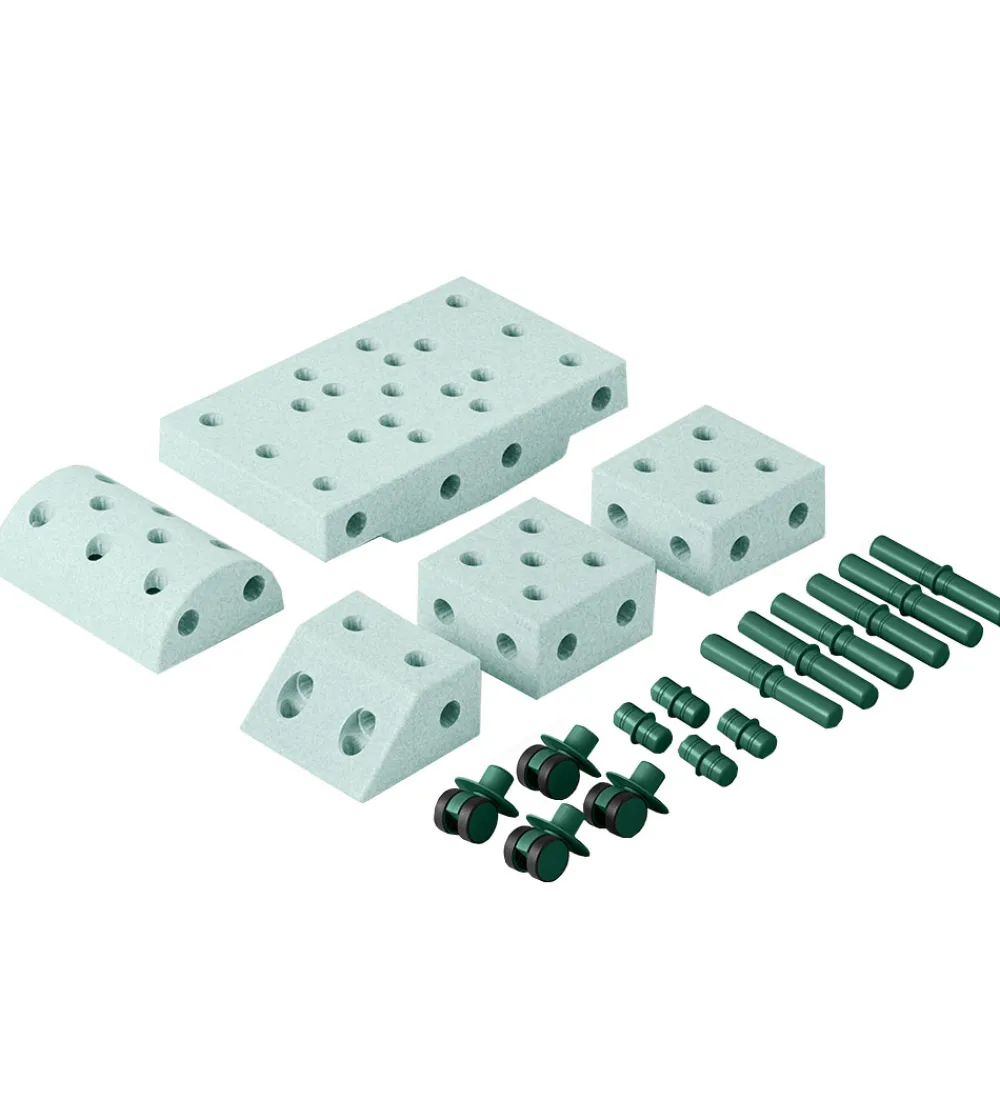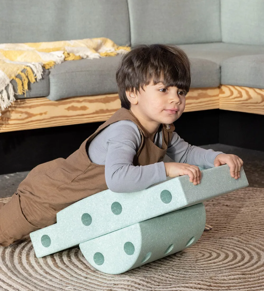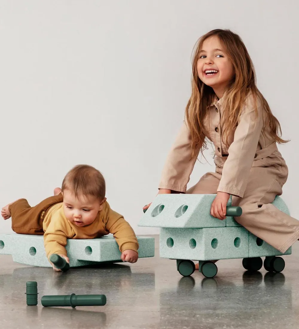 Sættet er lavet af genanvendeligt EPP-skum og fødevaregodkendt ABS. Det kan vaskes med vand og en børste, tages med i bad og endda også komme i opvaskemaskinen.