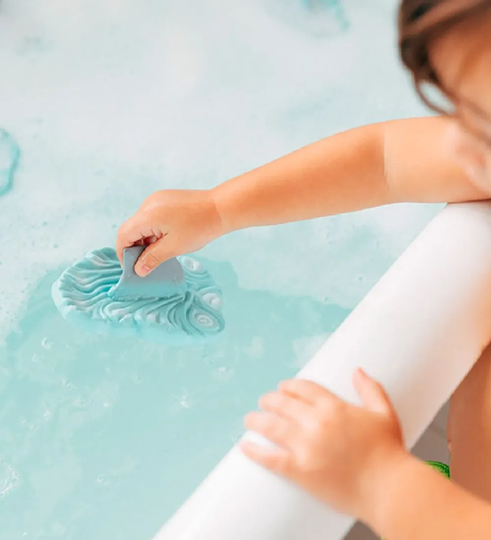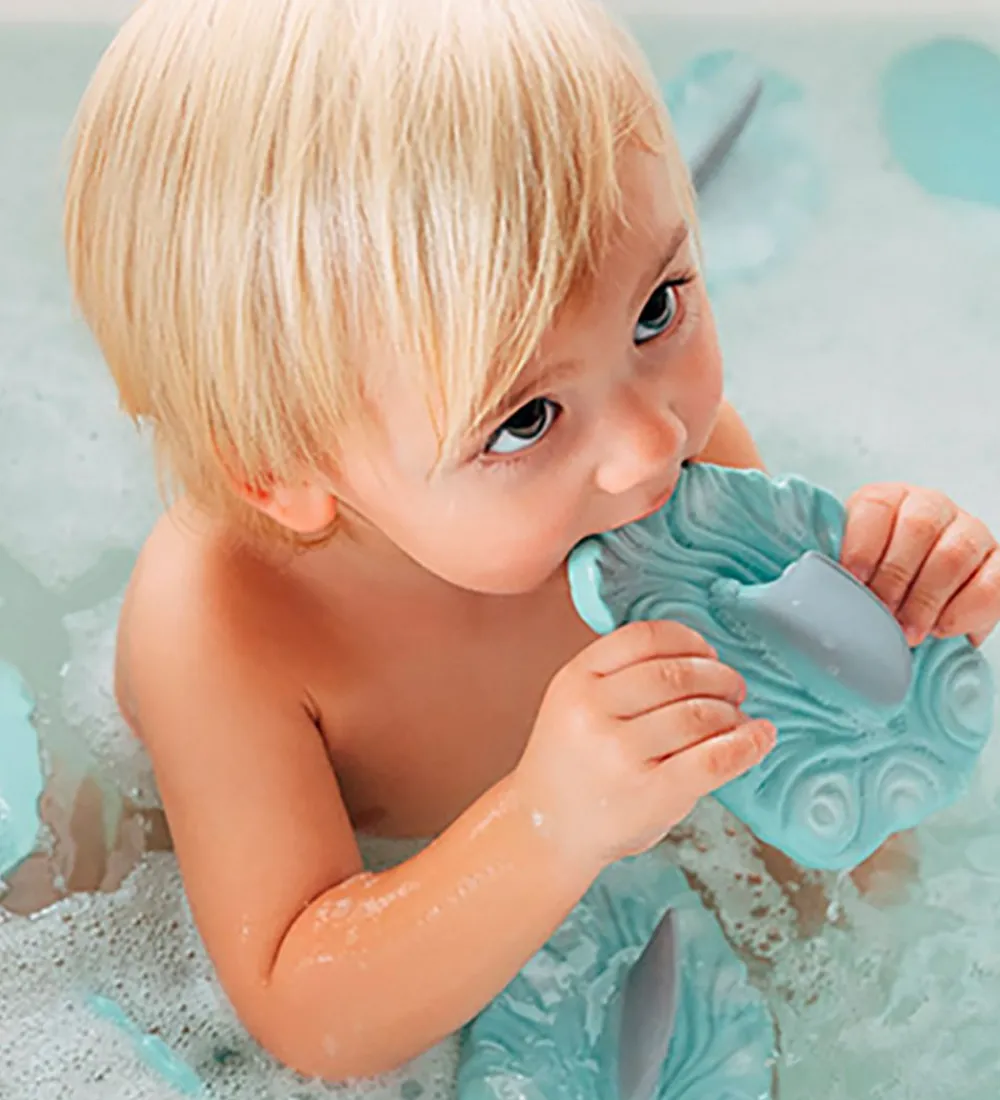 Oli & Carol badelegetøjet flyder i vandets overflade og gør badet lidt sjovere, da de små kan lege med det imens i vasker barnet. Badelegetøjet er lavet i naturgummi og er fri for skadelige kemikalier som BPA, PVC og ftalater, hvilket betyder at barnet sikkert kan bide i det, ligesom en bidering. Badelegetøjet har ingen huller, hvilket sikrer at der ikke kommer mug.