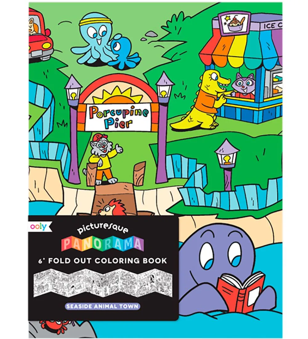 Smart Ooly malebog, med en by ved havet, med dyr som indbyggere.