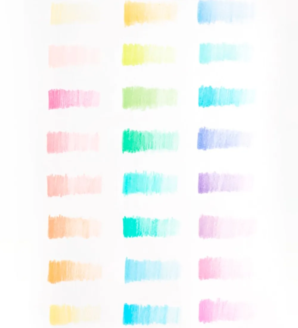 Flotte Ooly farveblyanter, bestående af i alt 24 forskellige pastel farver.