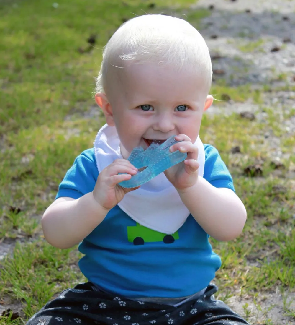 Bideringen kan komme i køleskabet, og kan derfor køle de ømme gummer ned og have en lindrende effekt. Det er et rigtig praktisk redskab, når barnet er ved tandfrembrud og specielt ved ømme gummer.