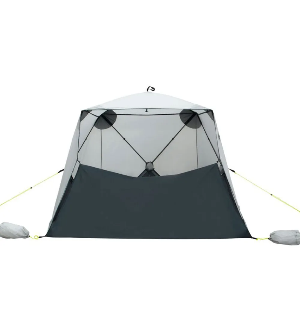 Outwell strandteltet beskytter mod sol, sand og vind. Strandteltets oversejl er lavet med outtex UV polyester og har praktiske meshlommer til småting. Strandteltet fastgøres ved hjælp af de medfølgende teltpløkker og har lommer, som kan fyldes med sand for ekstra stabilitet, samt har den en praktisk bund som også kan bruges som en dør for ekstra beskyttelse.