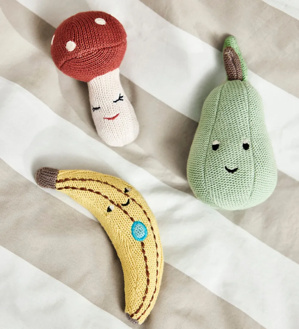 Ranglens svampeform gør den nem at gribe om for små hænder. OYOY har designet ranglen med en blød raslelyd, der tilføjer en ekstra dimension til legeoplevelsen.