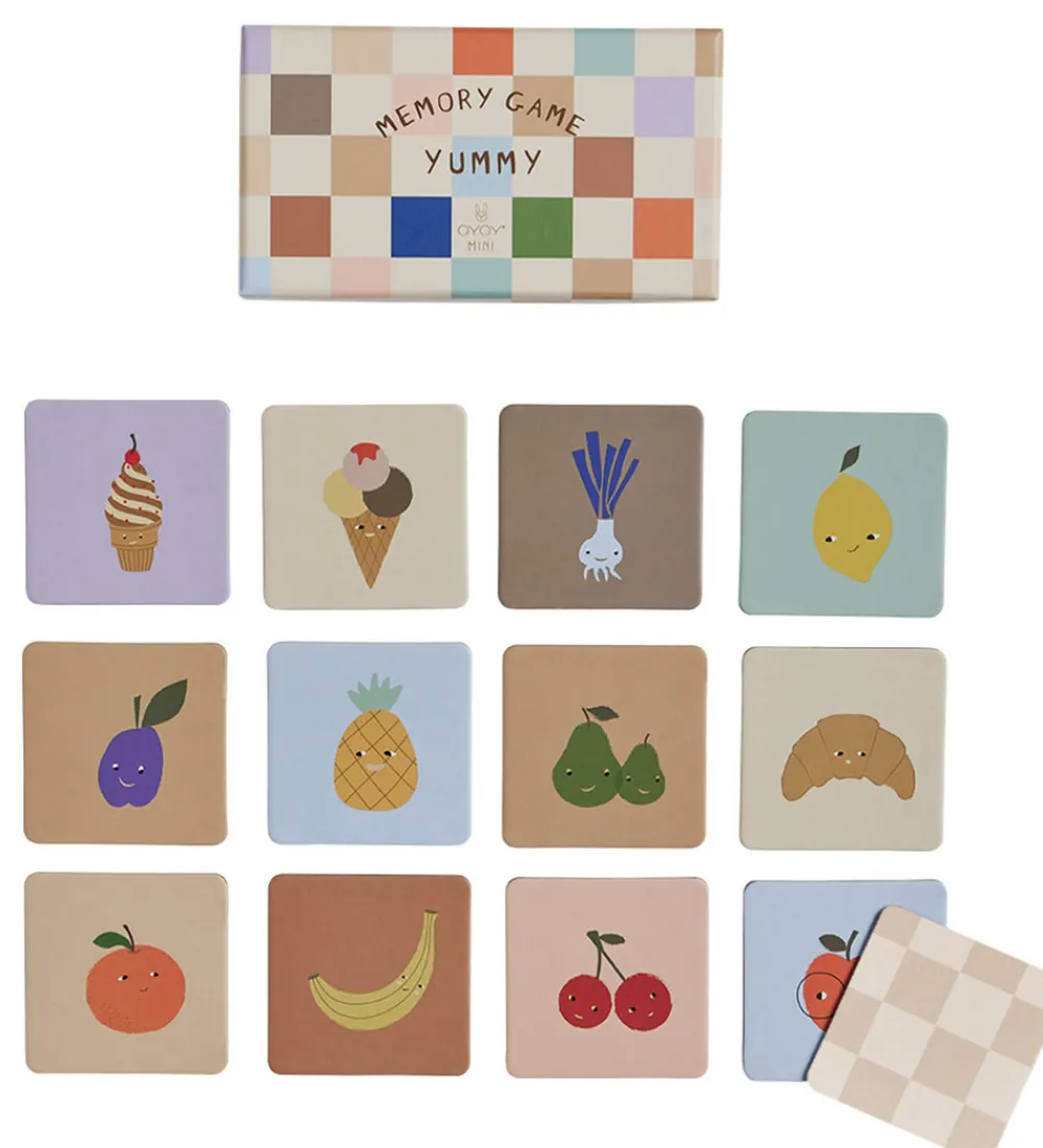 Lærerigt OYOY vendespil med forskellige motiver af “yummy” snacks i flotte farver.
