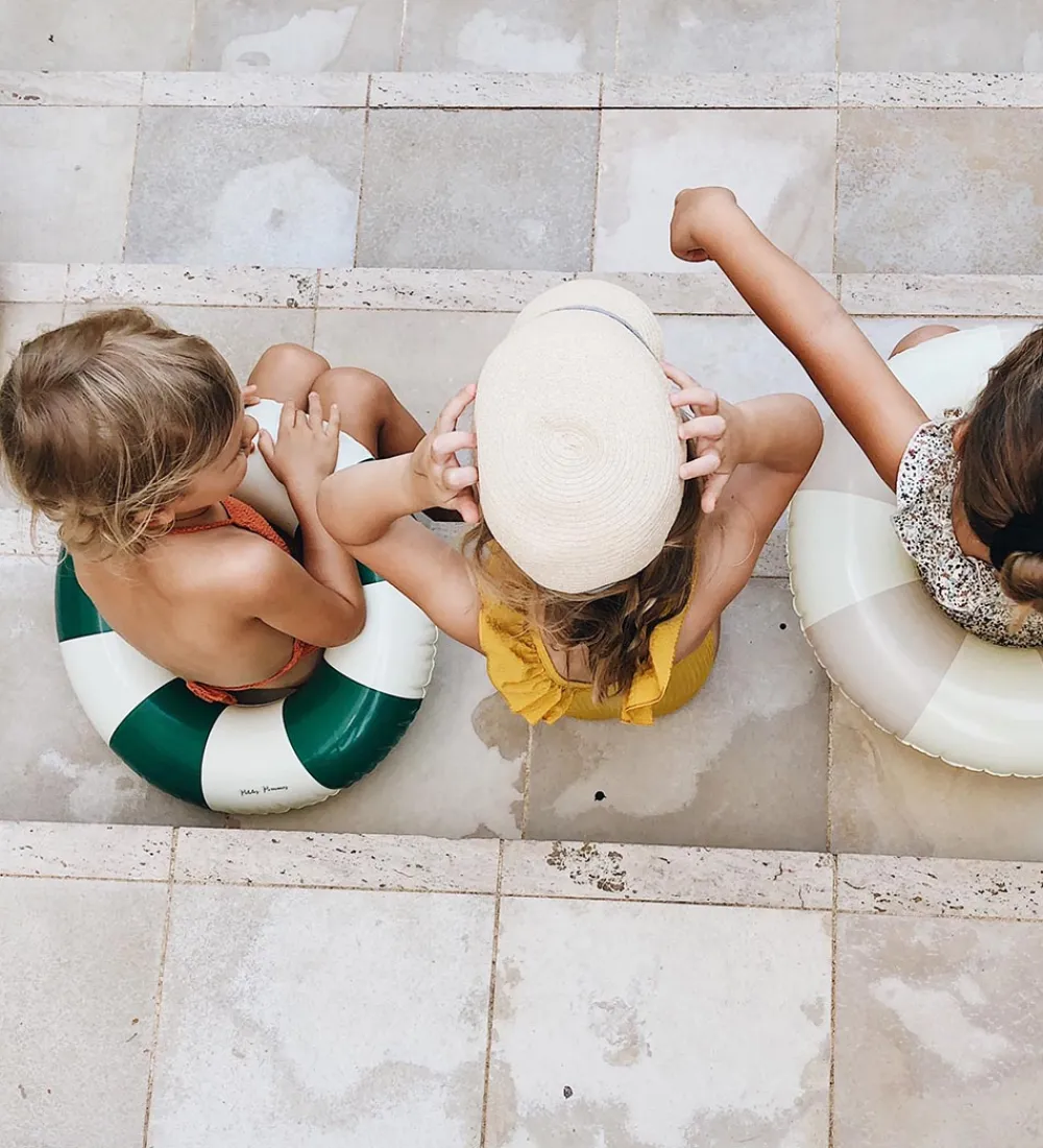 Petites Pommes baderingen gør tiden i vandet endnu sjovere for de mindste, og den er en perfekt følgesvend i poolen eller ved stranden. Baderingen er oppustelig med en praktisk ventil, som kan trykkes ind, og der medfølger et praktisk lappesæt i tilfælde af punktering.