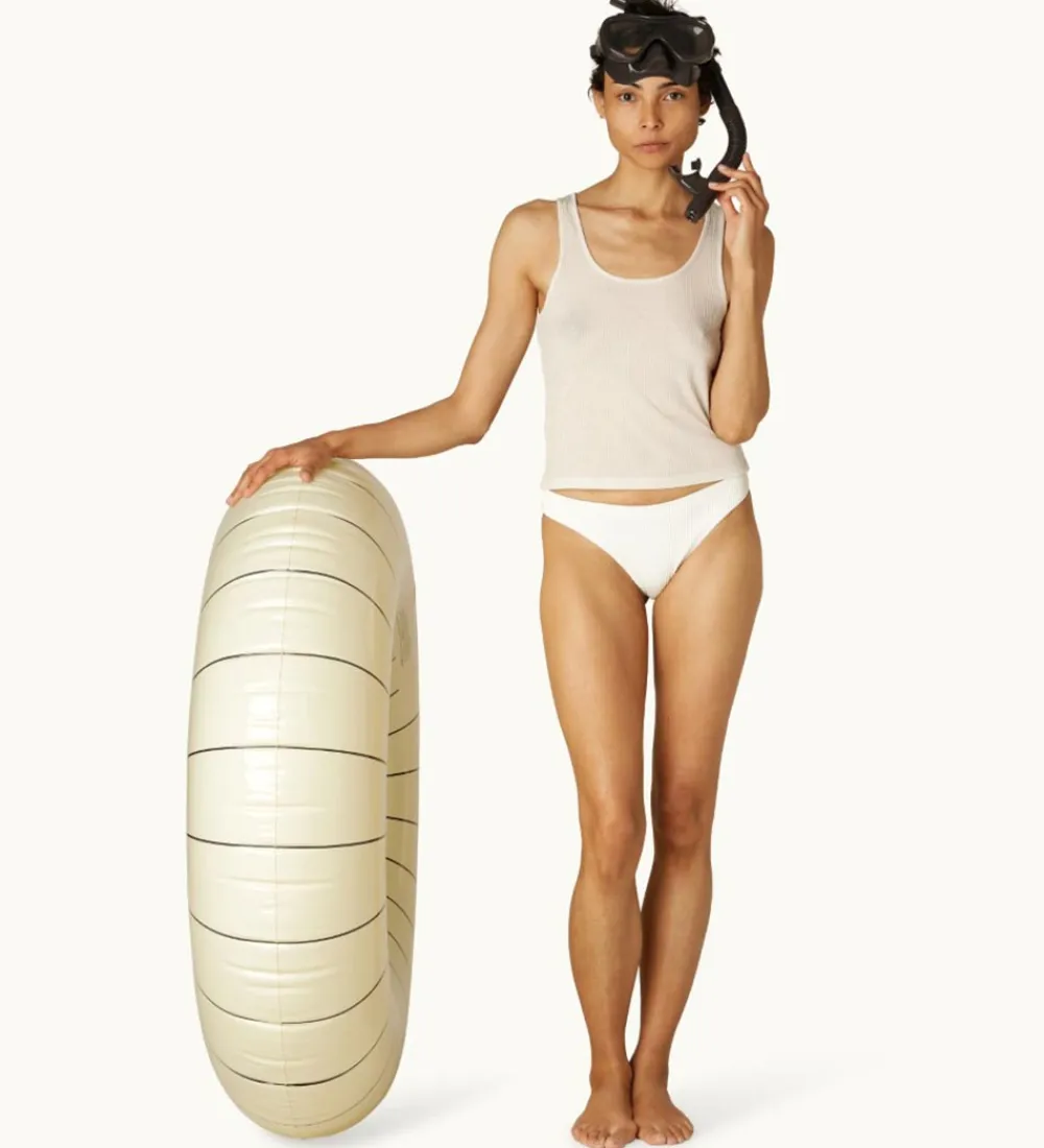 Petites Pommes baderingen gør tiden i vandet endnu sjovere, og den er en perfekt følgesvend i poolen eller ved stranden. Baderingen er oppustelig med en praktisk ventil, som kan trykkes ind, og der medfølger et praktisk lappesæt i tilfælde af punktering.