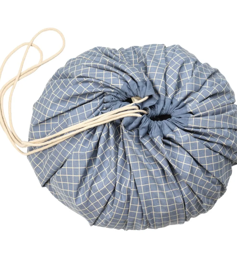 Smart Play&Go legetøjstæppe i blå med hvide tern på den ene side og i hvid på den anden side.