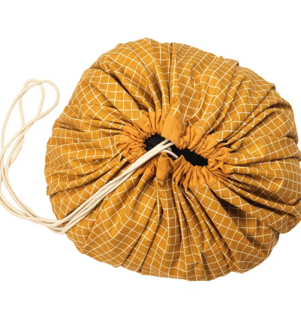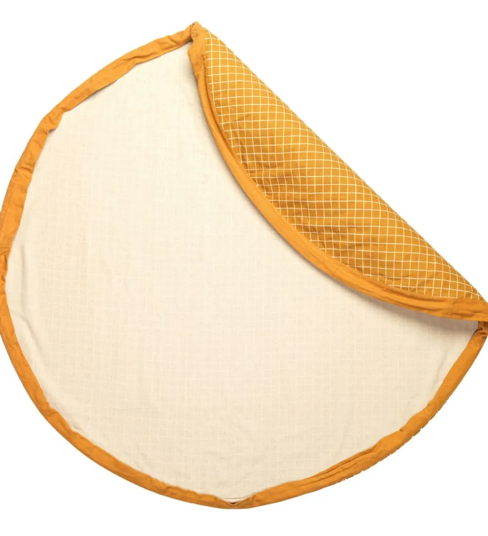 Smart Play&Go legetøjstæppe i gul med hvide tern på den ene side og i hvid på den anden side.