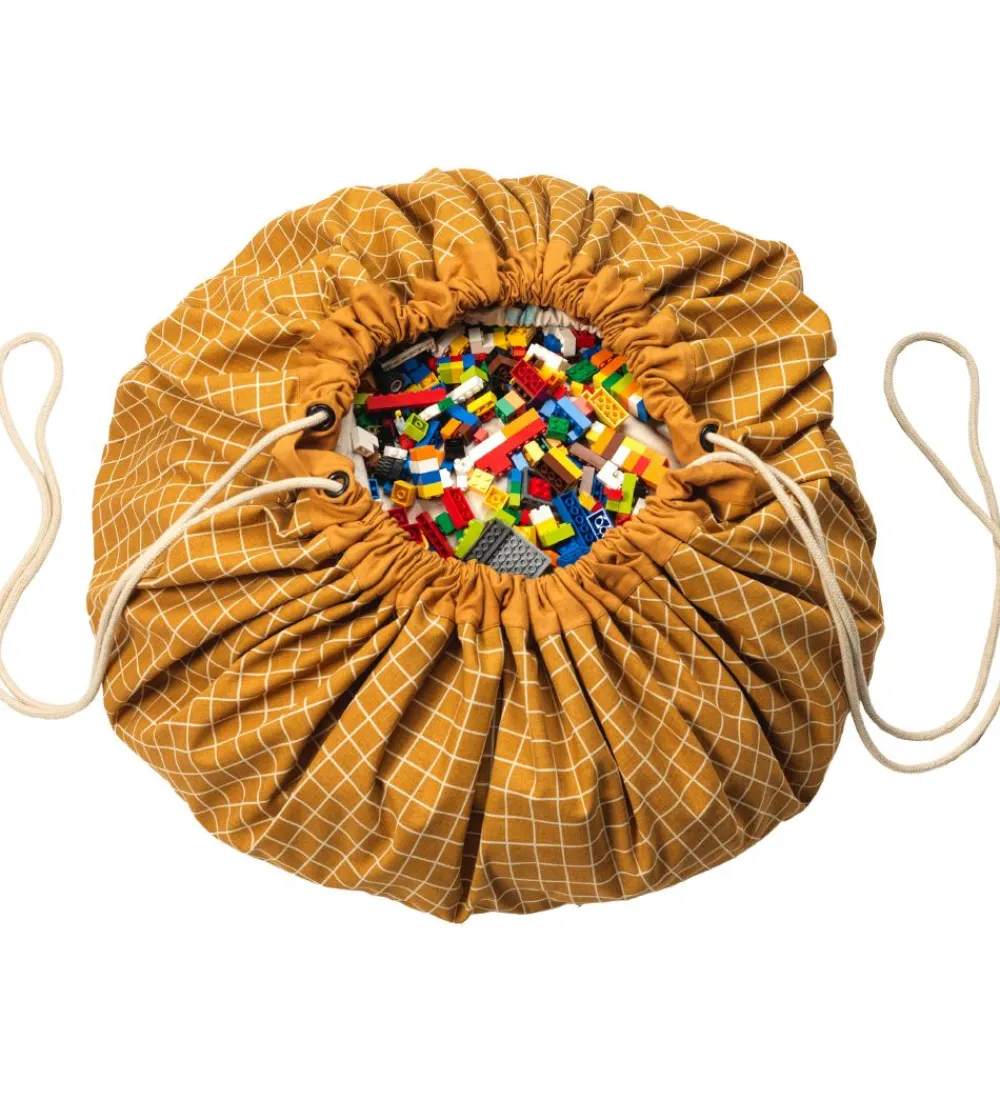 Play&Go legetøjstæppet er et stort cirkelformet stykke stof med en løbegang hele vejen rundt med en hvid snor, så man kan snøre tæppet sammen til en pose. I posen kan man opbevare sit legetøj, og når børnene synes, at legetøjet skal med ind i stuen, kan posen åbnes og legetæppet folder sig ud. Bagefter er det hurtigt og nemt at rydde op og lægge på plads. Den er god at tage med på stranden, da den er vandfast.