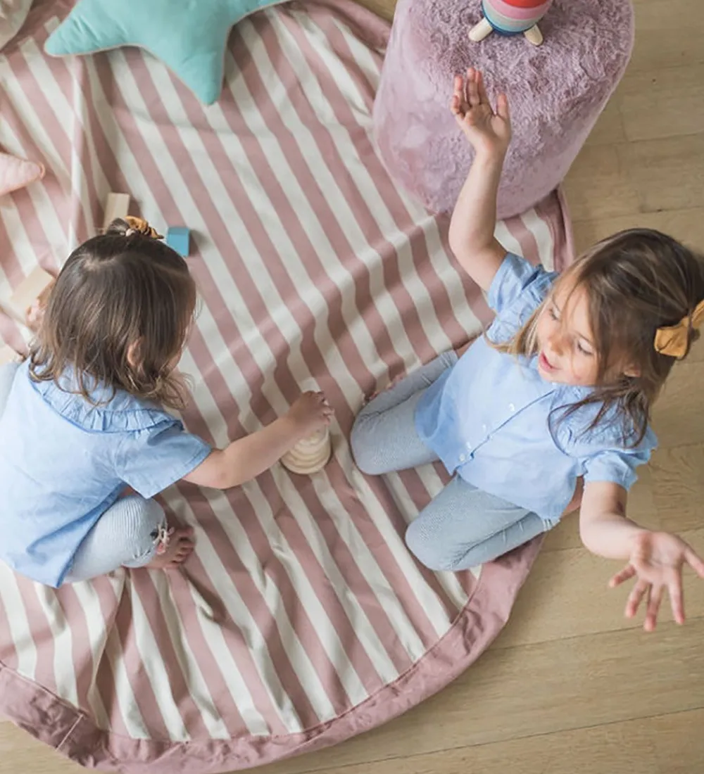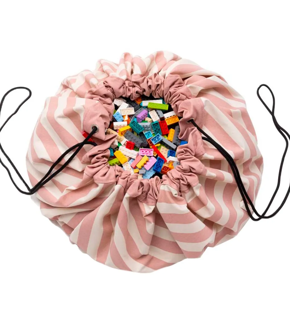 Smart Play&Go legetøjstæppe med rosa og beige striber.