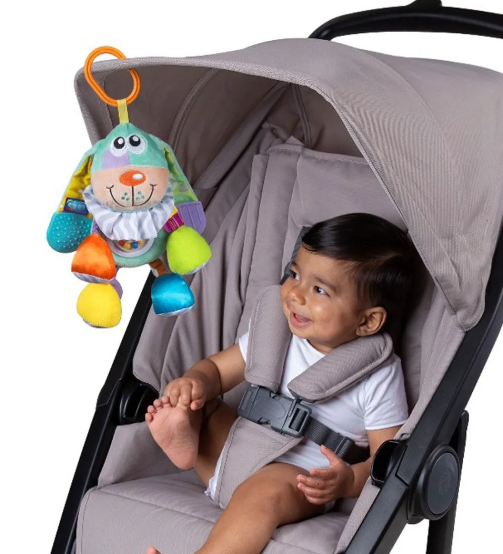 Playgro aktivitetslegetøjet har massere at udforske for de små, som f.eks. en rangle i maven, knitrende papir og ører i gummi, med forskellige strukturer som de små kan lindre kløende gummer med. I toppen er der en praktisk ring, så legetøjet kan hænges op lige hvor det er nødvendigt. Aktivitetslegetøjet er med til at udvikle finmotorikken hos de små.