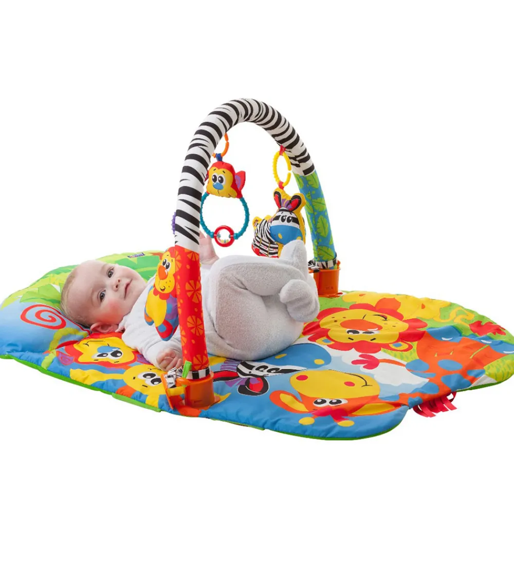 Sjovt Playgro aktivitetstæppe med mange flotte i et sødt safari-tema.