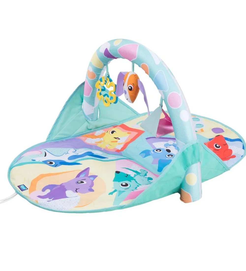 Sjovt Playgro aktivitetstæppe med print af forskellige hunde i fine nuancer.