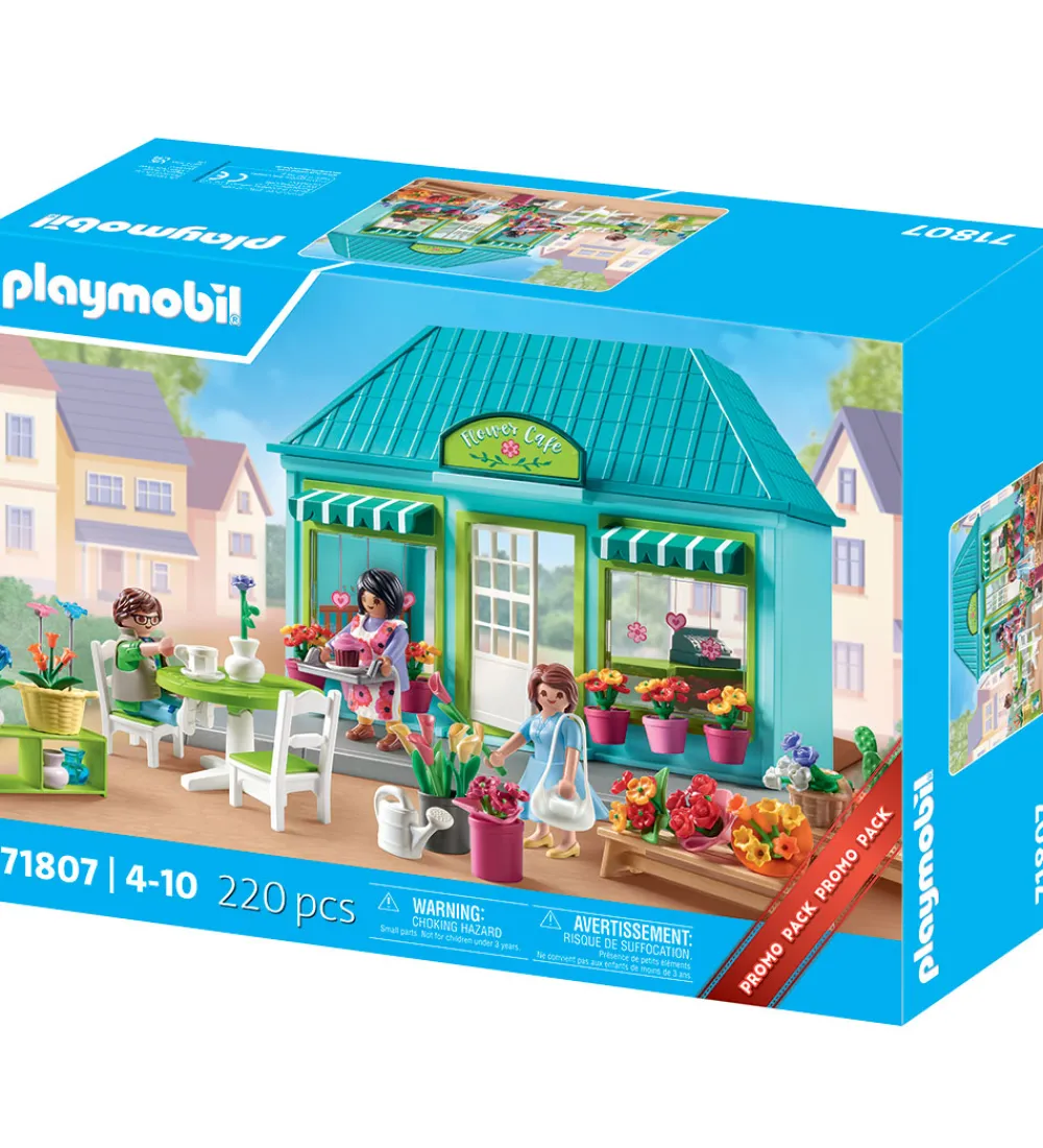 Hyggeligt Playmobil sæt med i alt 220 dele, der tilsammen udgør en flot blomsterhandler-café med tre figurer, et væld af smukke blomster og en helt masse tilbehør.