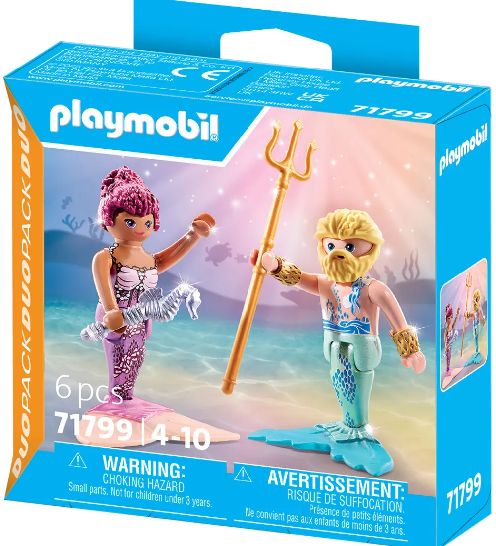 Flotte Playmobil DuoPack figurer med i alt 6 dele, der tilsammen udgør to figurer af en havfrue og Triton med tilbehør.