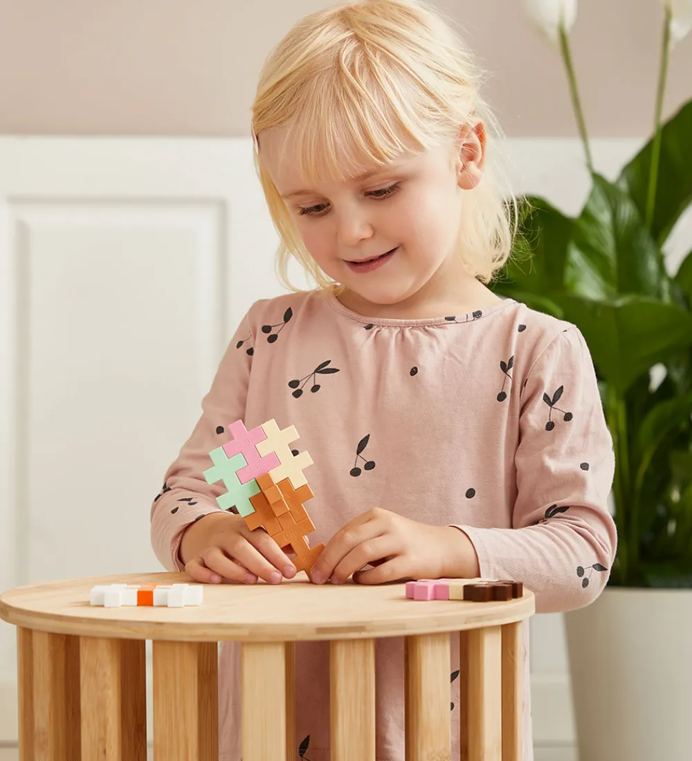 Plus-Plus BIG klodserne har form som plus-tegn, hvilket gør, at de kan sættes sammen på alle leder og kanter. BIG klodserne er i den store størrelse, som er god til de helt små.