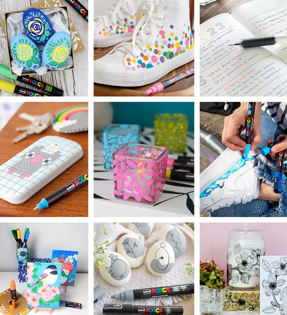 Posca tuscherne har en semi-fleksibel pensel-spids, som kan lave både fine og bredere linjer. Disse tuscher er uundværlige for både nybegynderen og den professionelle, da de er alsidige, velegnede til alle slags kreationer og kan bruges både indendørs og udendørs.