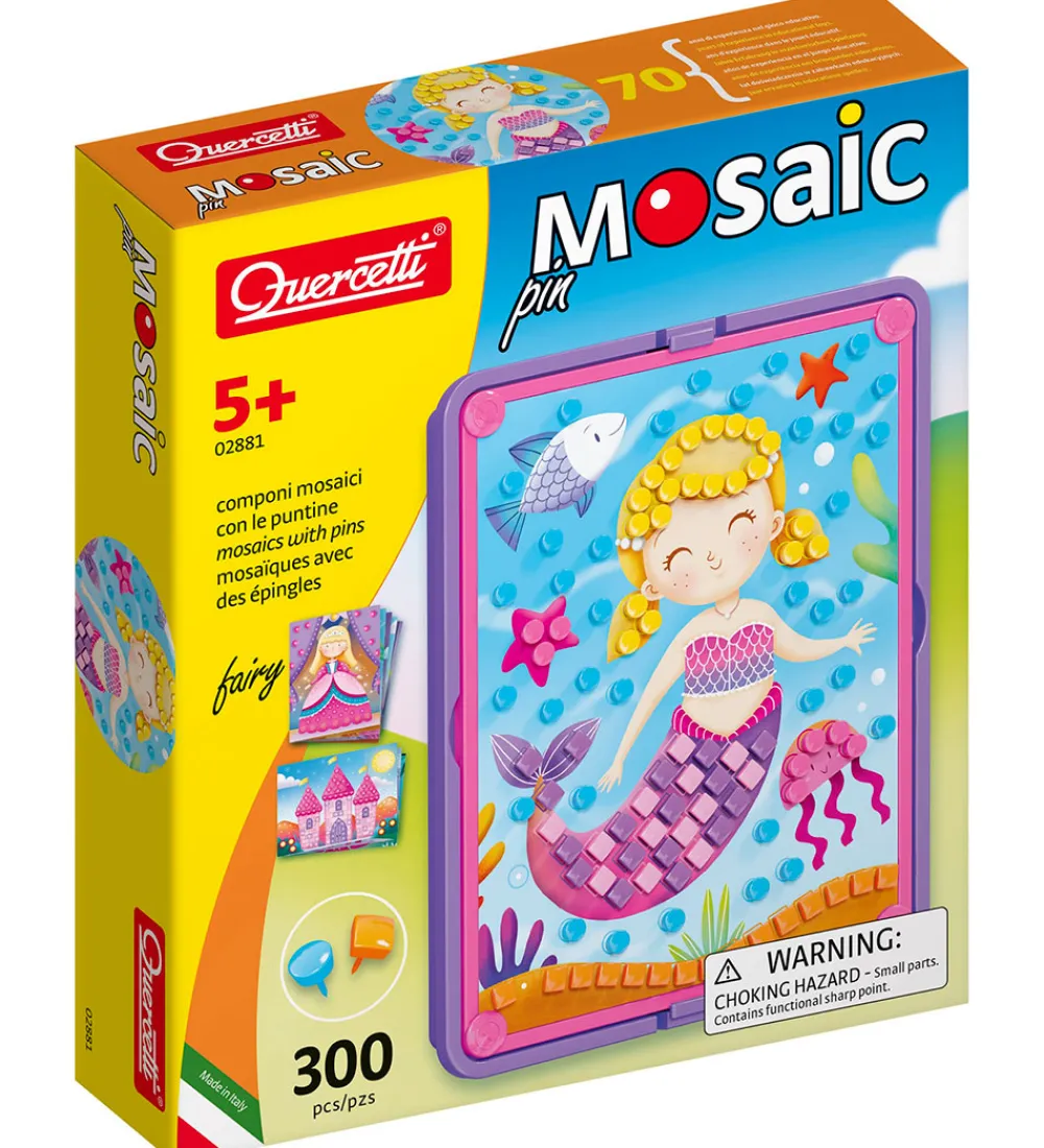 Stiftmosaikken er perfekt til børnehavebarnet, og stimulerer de finmotoriske færdigheder, hånd-øje-koordination og kreativ tænkning. Quercetti udvikler legetøj ud fra STEAM-læring, som indebærer videnskab, teknologi, ingeniørarbejde, kunst og matematik.
