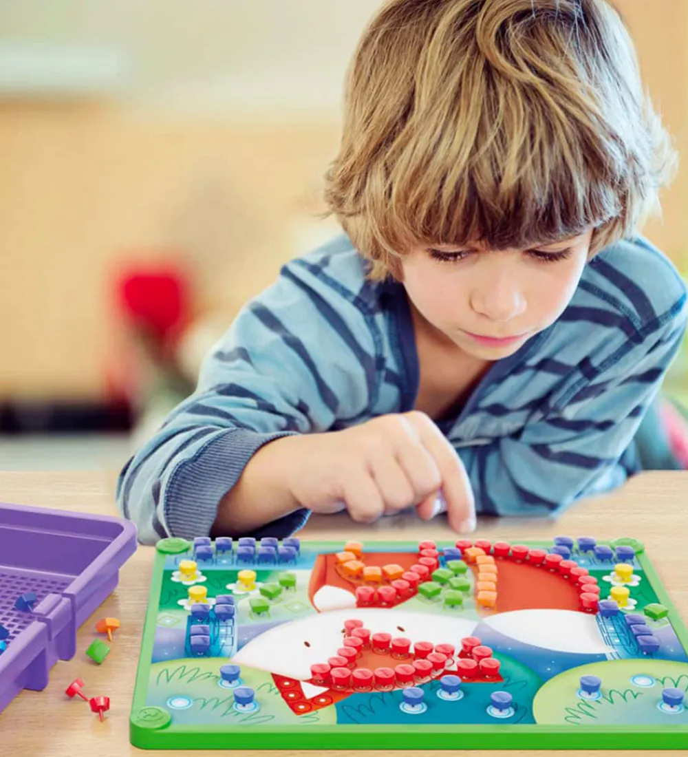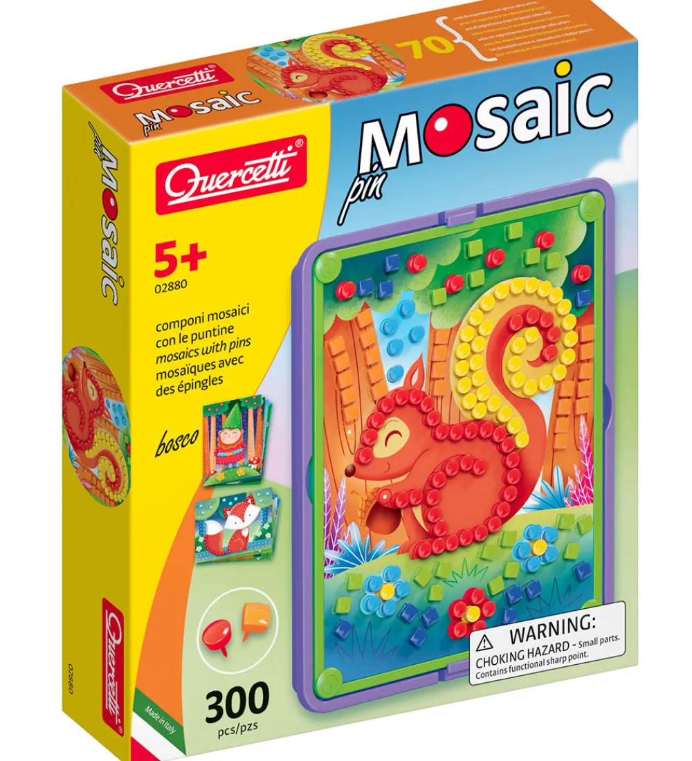 Stiftmosaikken er perfekt til børnehavebarnet, og stimulerer de finmotoriske færdigheder, hånd-øje-koordination og kreativ tænkning. Quercetti udvikler legetøj ud fra STEAM-læring, som indebærer videnskab, teknologi, ingeniørarbejde, kunst og matematik.