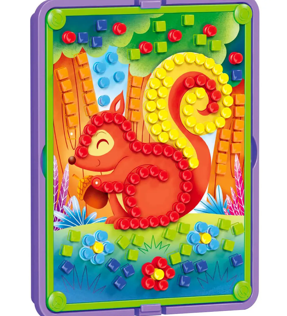 Sjov Quercetti stiftmosaik med 300 stifter i flotte farver, så der kan laves fine billeder. I æsken medfølger: