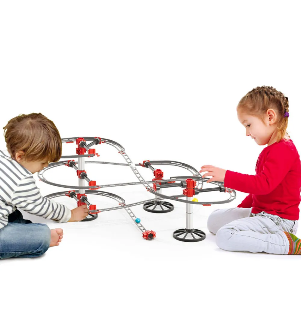 Kuglebanen er perfekt til byggeglade børn og stimulerer de visuel-rumlige evner, årsag/virkning-princippet og problemløsning. Quercetti udvikler legetøj ud fra STEAM-læring, som indebærer videnskab, teknologi, ingeniørarbejde, kunst og matematik.