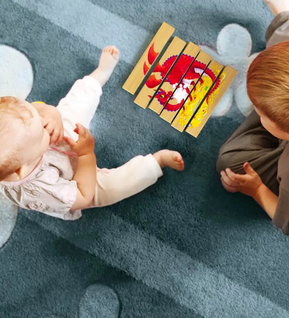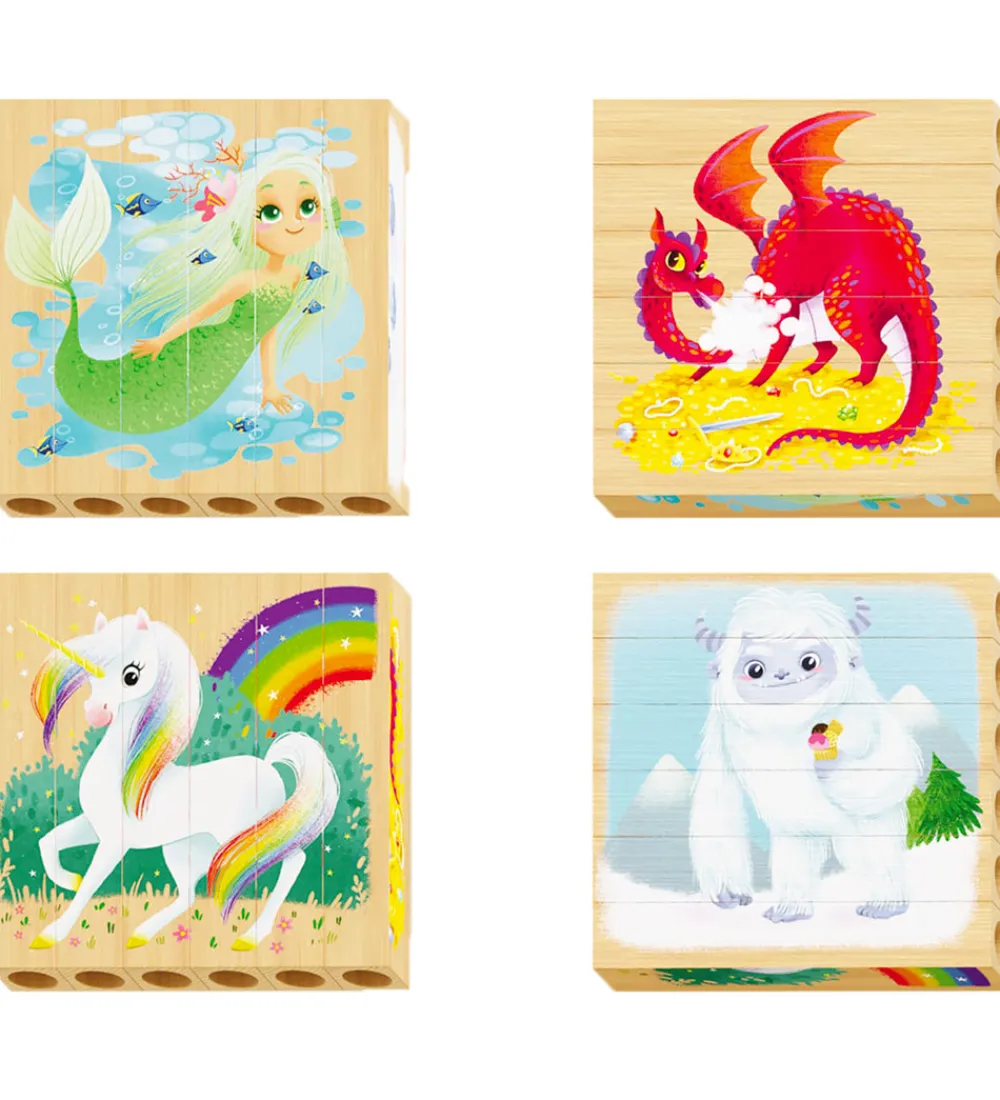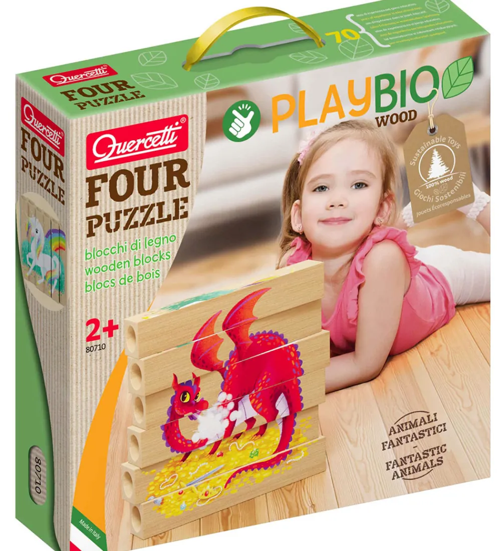 Sjove Quercetti puslespil med motiver af fabeldyr.