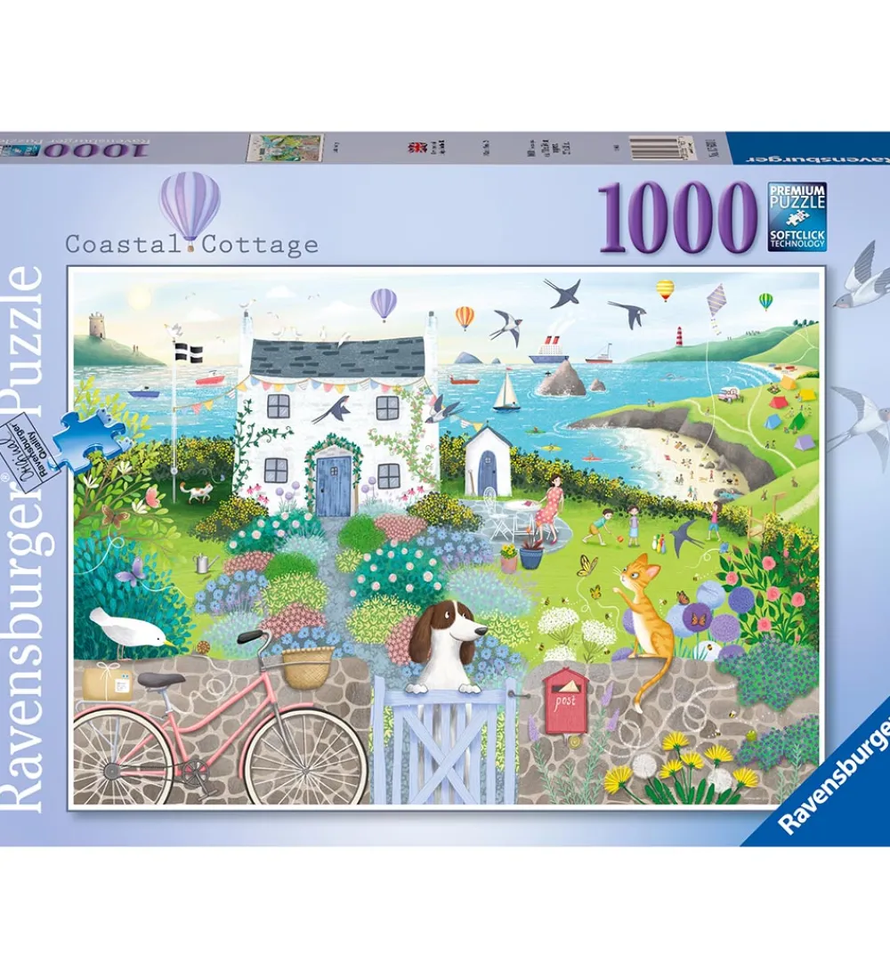 Fint Ravensburger puslespil med et motiv af en hytte ved kysten