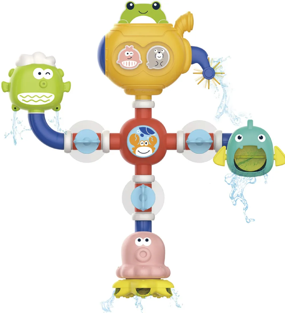 Scandinavian Baby Products badelegetøjet har en sugekop så den nemt og praktisk sidder fast på fliserne når børn skal lege. Vandets bevægelser gennem små møller og huller virker stimulerende får de små, og holder deres opmærksomhed i badet.