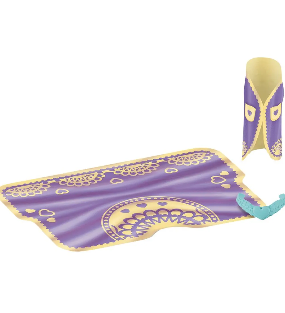 Skønt Schleich Horse Club tilbehørssæt bestående af et hestetæppe og en ridevest i lilla med guld detaljer. Der medfølger også en grøn halskæde.