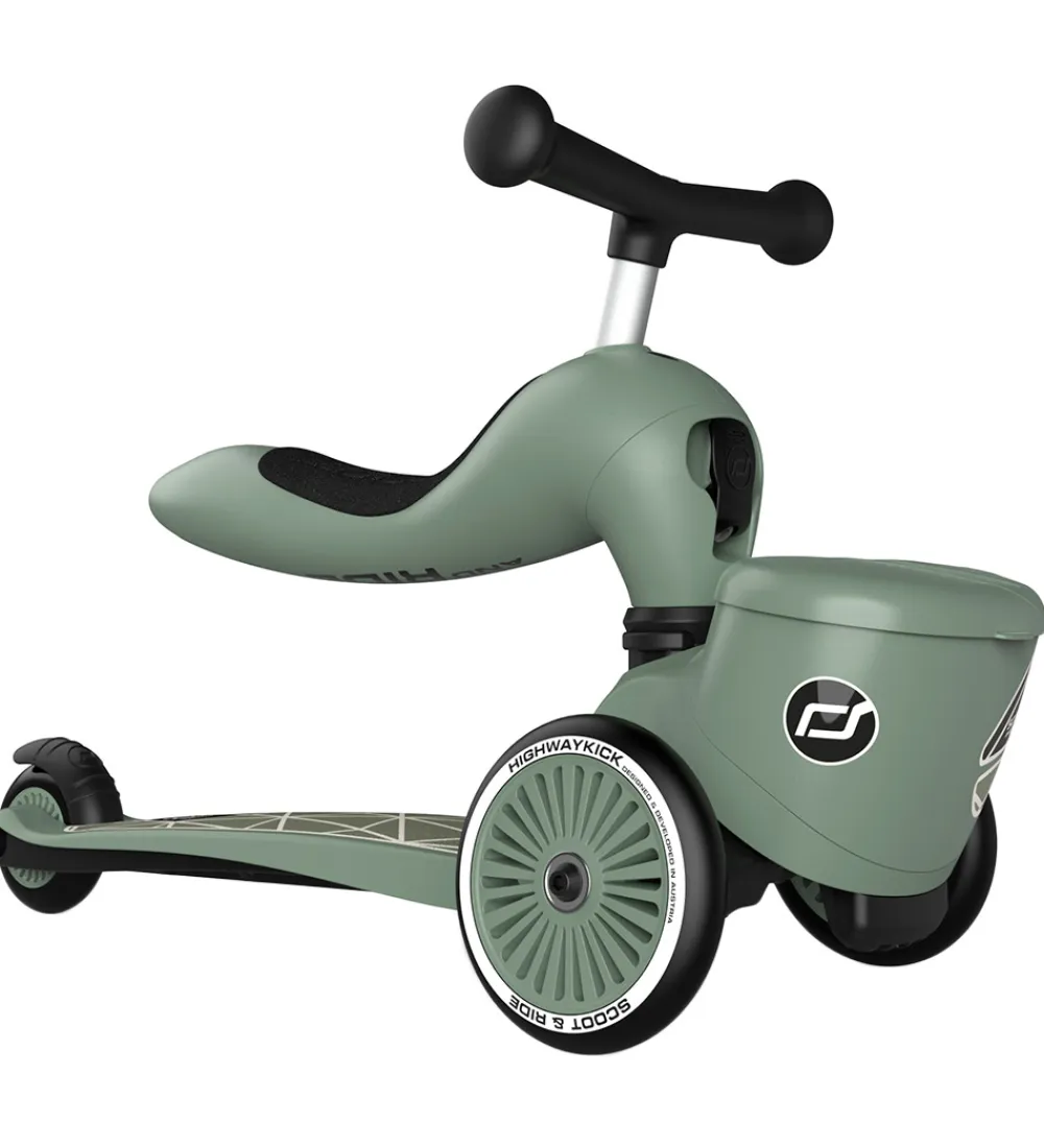 Scoot and Ride Highway Kick 1 Lifestyle er ideelt som barnets første køretøj, som både kan bruges som løbecykel og løbehjul. Highway Kick kan let omdannes fra løbecykel til løbehjul og omvendt, uden værktøj. Både løbecyklen og løbehjulet kan let indstilles i både sæde højden og styr højden. Highwat Kick har en bremser ved baghjulet, som barnet selv kan anvende og en bremse mellem de to forhjul, som forældrene kan anvende. Highway Kick er let for barnet at dreje, og man kan med et klik sørge for, at den ikke kan dreje, så den dermed er sikker for selv de små børn at køre på. Fortil er der en praktisk opbevaringsboks, til f.eks. yndlingsbamsen eller lignende.