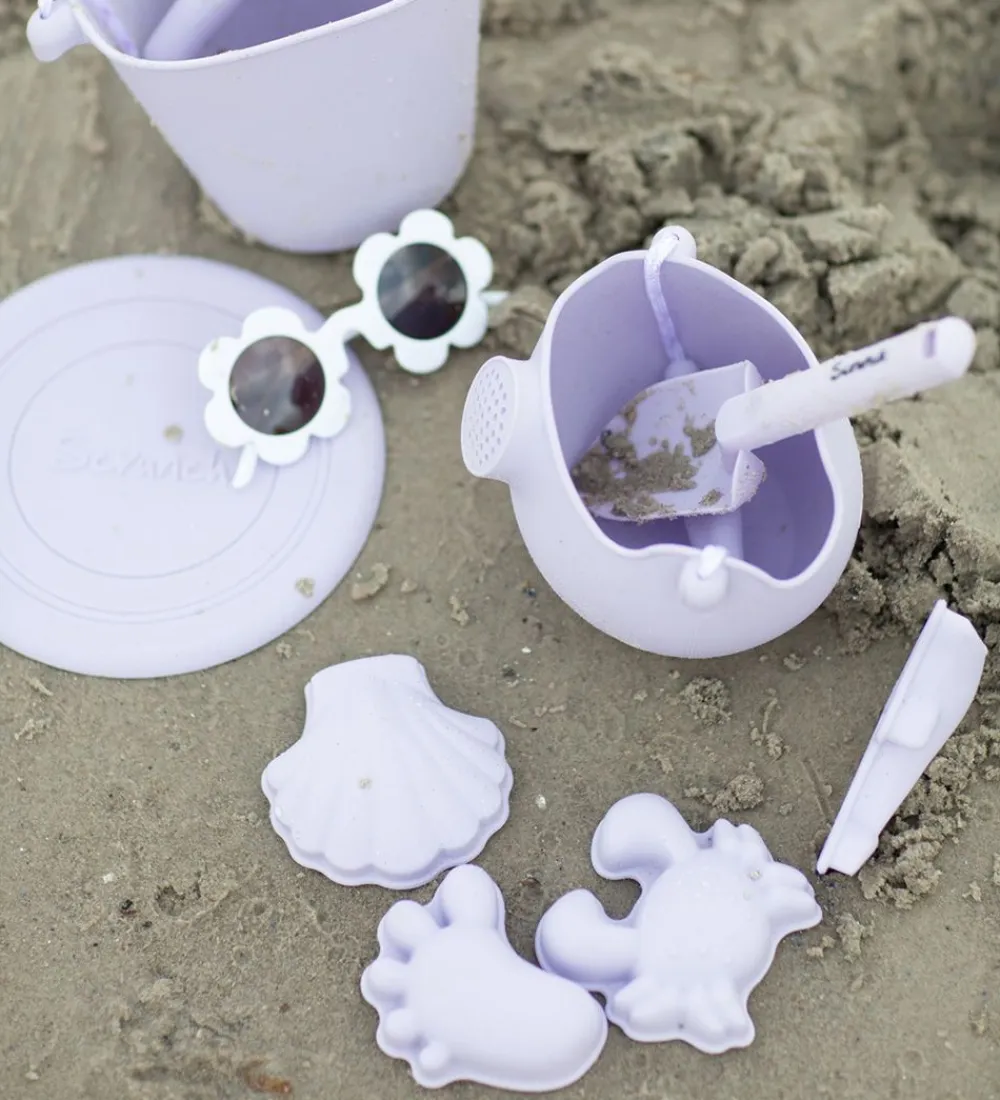 Fine Schrunch sandforme i ensfarvet lyselilla.