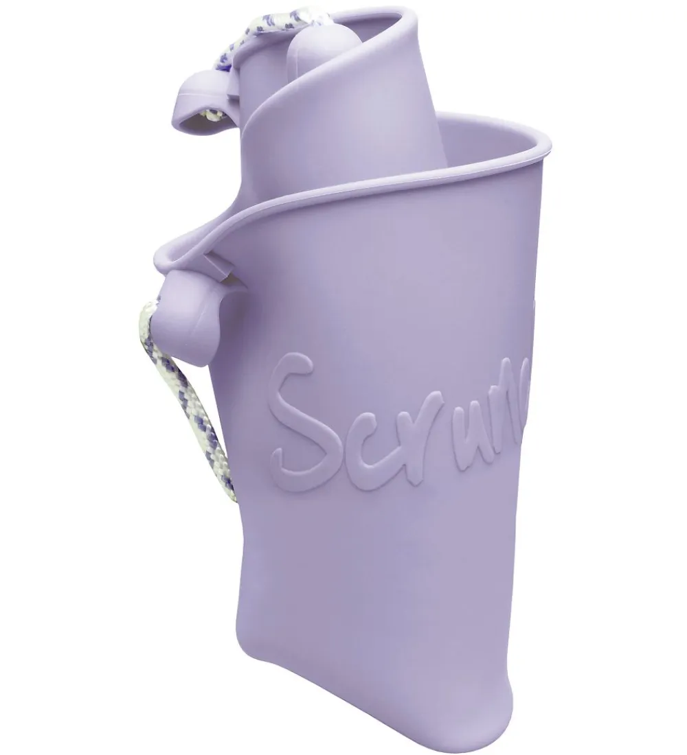 Sej Scrunch spand i ensfarvet lavendel med “Scrunch Bucket” stående på siden.