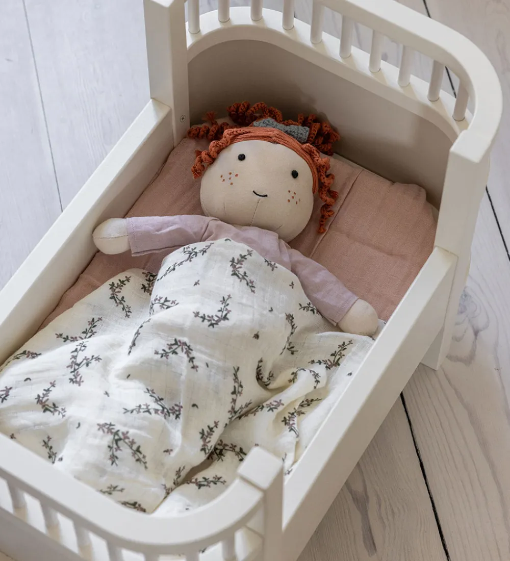Sebra dukkesengen er den klassiske Sebra Juno seng, blot i miniature udgave. Dukkesengen tager udgangspunkt i de klassiske runde hjørner og de velkendte gavlender med tremmer, hvilket giver denne dukkeseng et helt særligt og stilrent look. Dukkesengen kan let tørres af med en fugtig klud.
