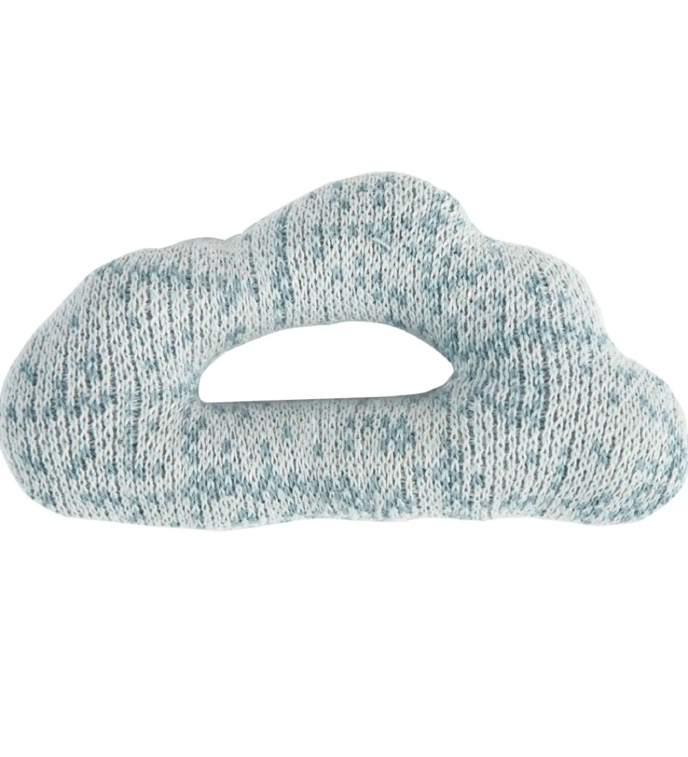 Fin Sebra rangle i lysblå meleret strikkvalitet formet som en sky.